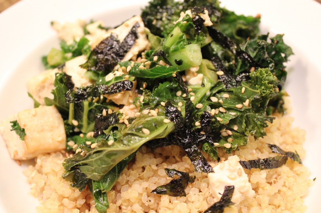 This recipe pairs kale with one of my loves, Tofu! I could seriously eat tofu everyday . . just pan fried with soy sauce. . dude, bring it on. So simple and so yummy. And, this recipe was voted 1 of 5: Best New Vegetarian