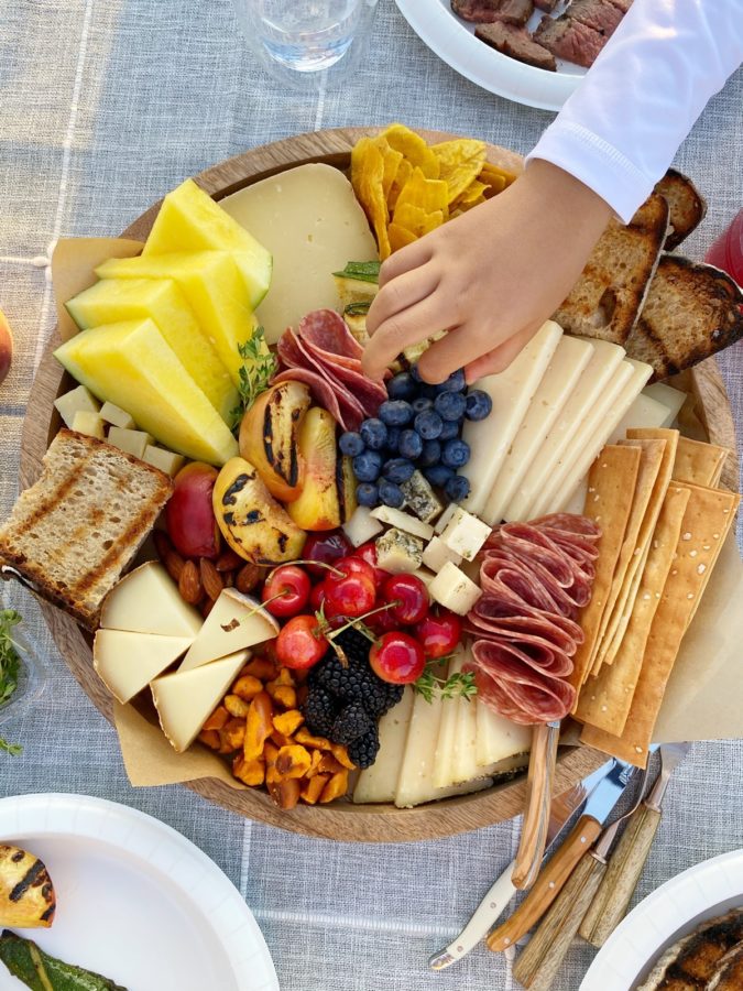 Summer Themed Cheese Board with grilled fruit