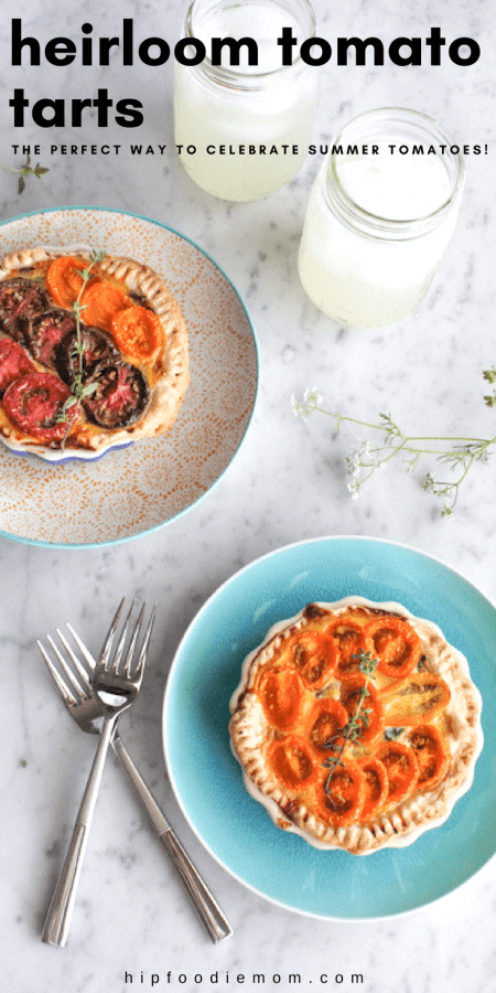 Heirloom Tomato Tarts are the perfect way to celebrate and show off beautiful summer tomatoes! These mini quiches are topped with heirloom tomatoes and make a perfect meal any time of day.