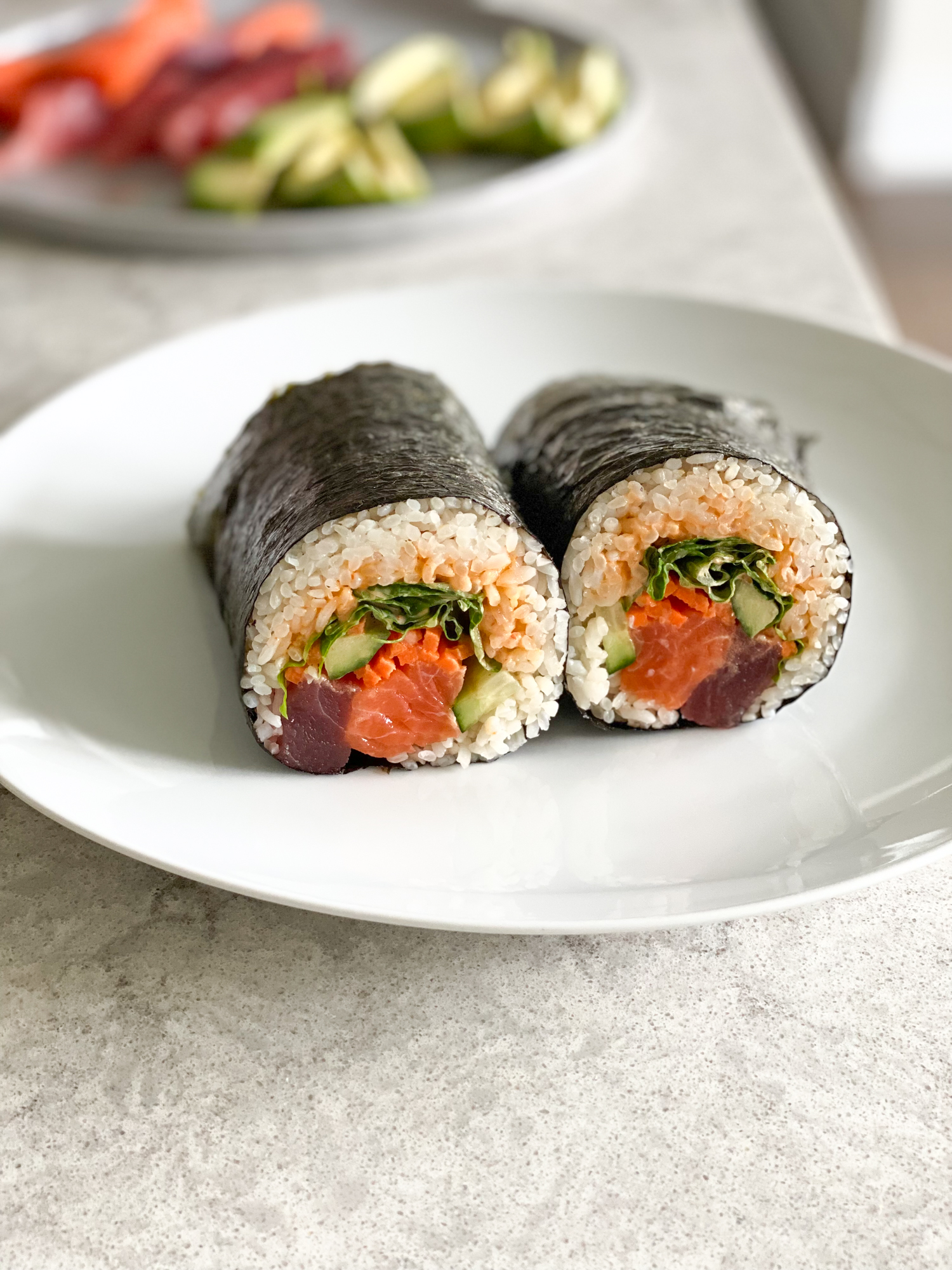 Whoever thought to pack delicious goodness into some nori and make a burrito-sized sushi roll is genius! If you’re in LA, NYC, San Francisco, or heck even Salt Lake City has a restaurant now. . you’ve probably seen one of these before. This restaurant claims they started the whole trend. Who started it? I’m not sure .. you just need to make one!!! And I’ll show you how!