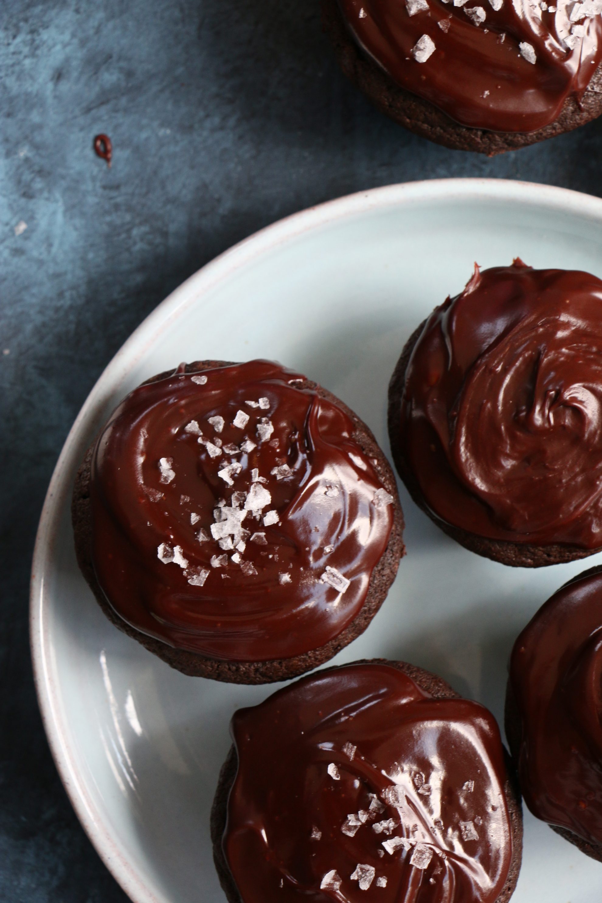 - Using an offset spatula, or back of a spoon, spread the ganache over each cooled cupcake. Your ganache should be thick enough to where it does not run off the cupcake. Top with flaky sea salt if desired. Enjoy!
