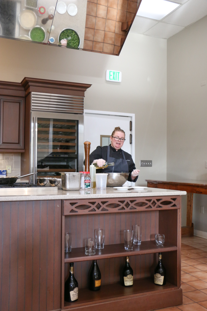 Since I’m a foodie, my initial attraction to Kohler this summer was the Chef’s Table Dinner Series! Located at the Kitchens of Kohler, this is a three-course dinner demonstrated, prepared and served by a featured Destination Kohler chef! We were there for Paella night and Chef Amanda cooked right in front of us, showing us how to make her paella and answered all of our questions.