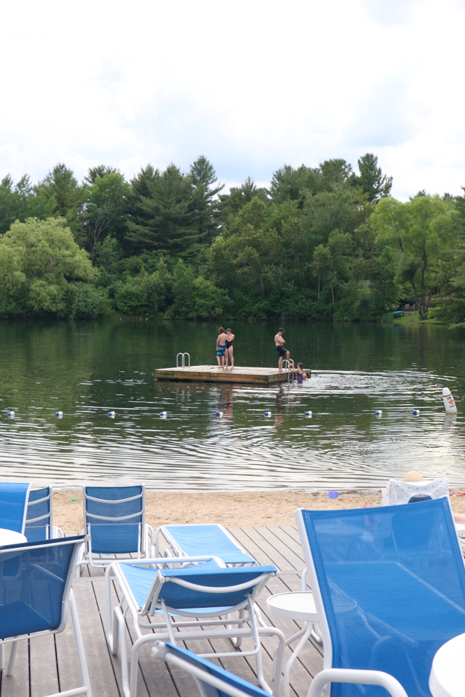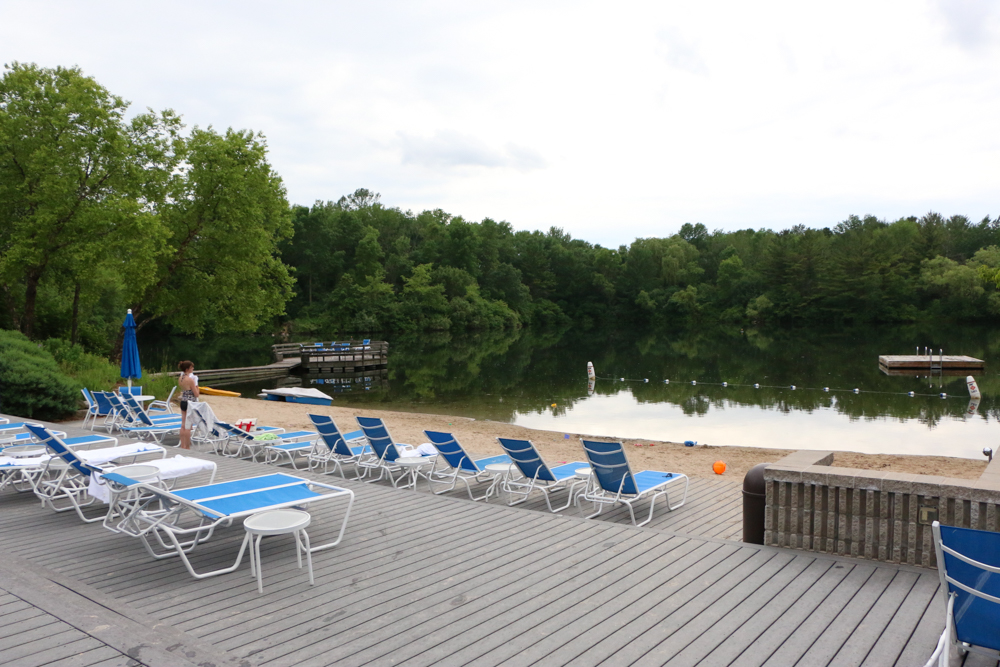 The set up is perfect! Right outside the pool area (and the pool area is indoor), you walk out to the lake. There’s sand and lounge chairs, everything you and your family need to enjoy some time in the water!