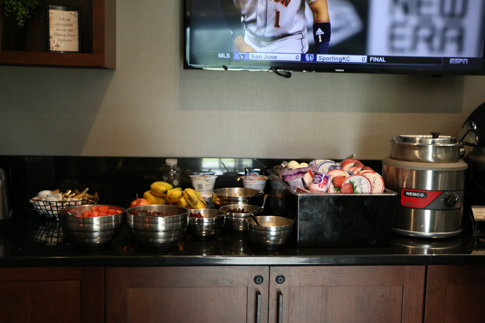 The next morning, we woke up and, because we were staying at The Inn on Woodlake, we were able to enjoy a complimentary breakfast! If you have kids, you know what a bonus this is. We took advantage of the free breakfast (complete with eggs, hash browns, bacon, sausage, toast, bagels and even a yogurt parfait bar area!) both mornings.