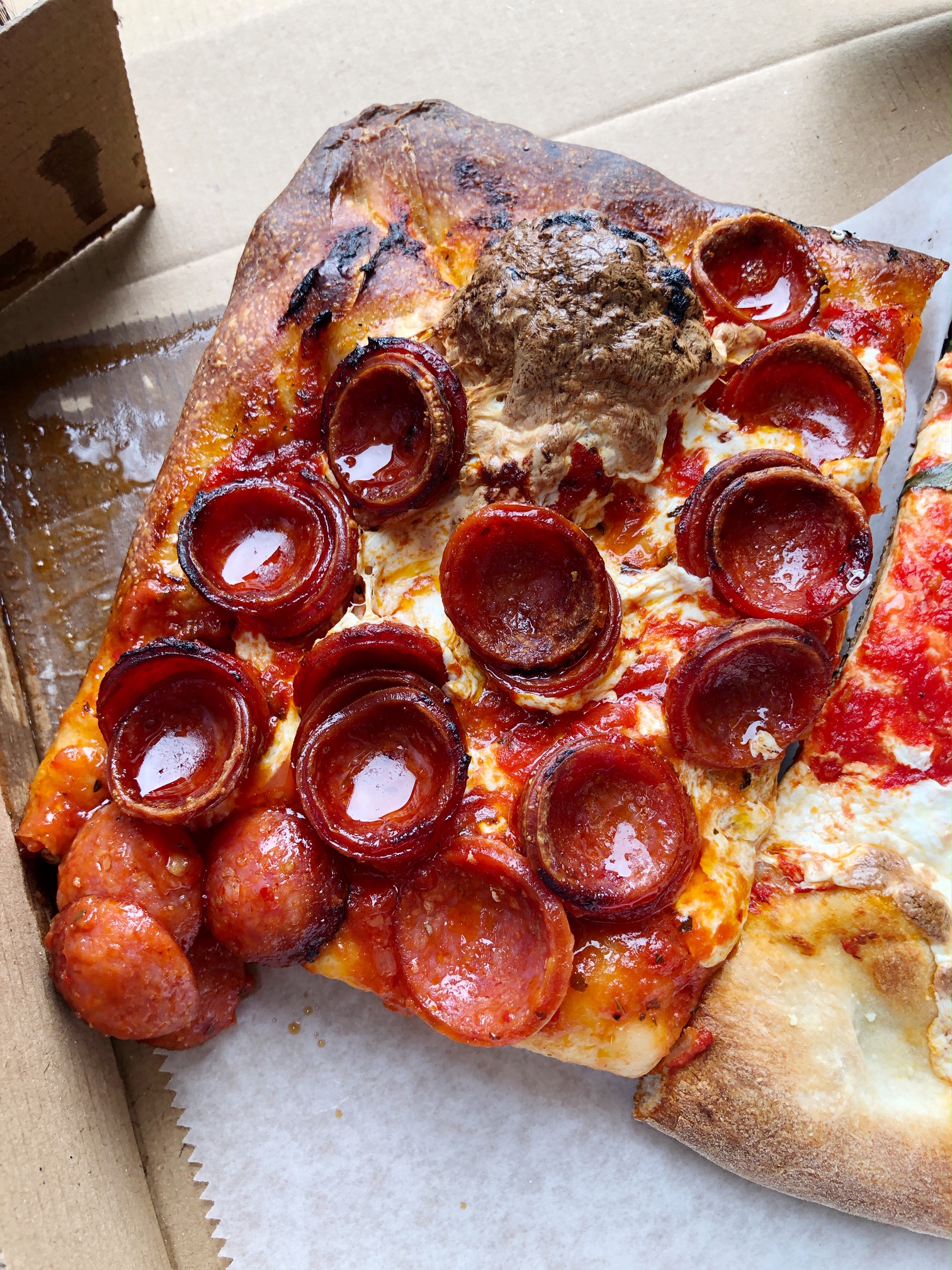 Prince Street Pizza! You can order pizza by the slice! This is the Spicy Spring (square) pepperoni cups slice. When we went, there was a line so be prepared to wait. . but it’s SO worth it!