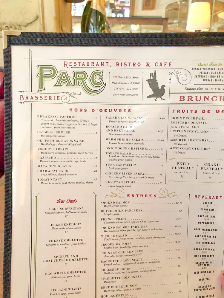 We started with Parc in the Rittenhouse Square neighborhood. I couldn’t get a brunch reservation but we were able to eat there mid-day at 2pm on a Sunday. And Parc has a midday menu so it was perfect!