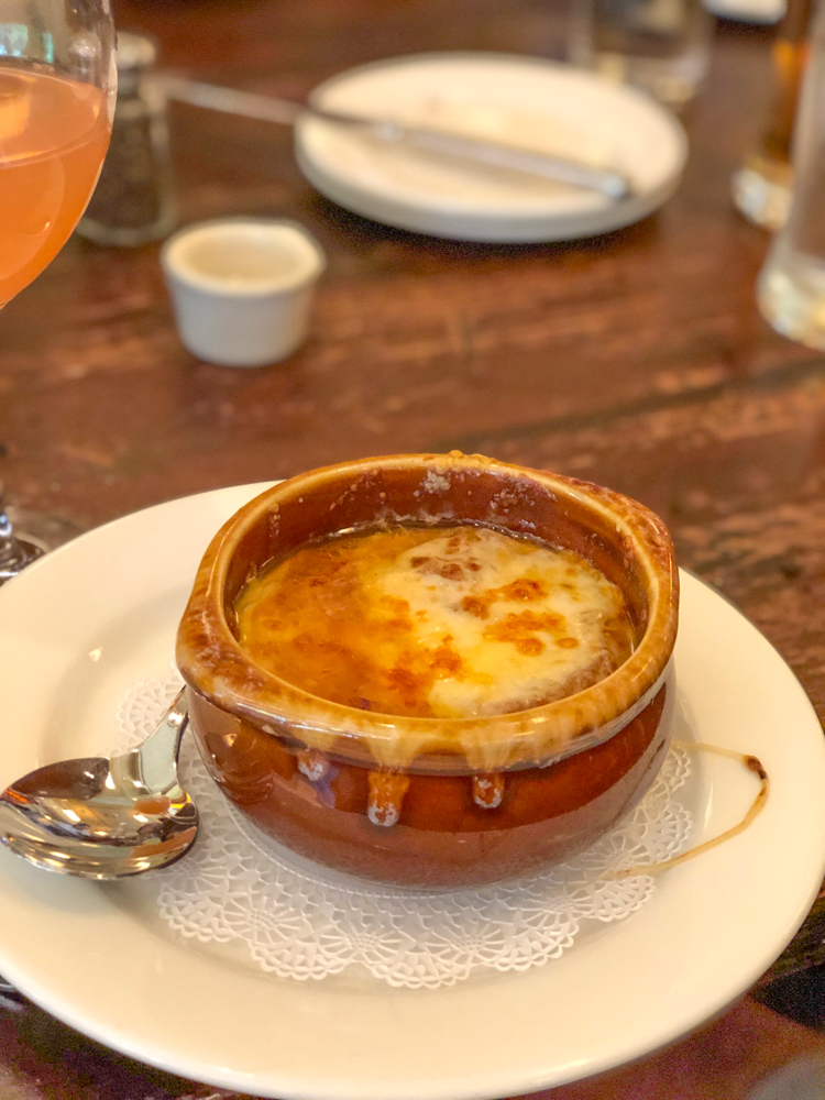 We started with their Onion Soup Gratinée and it was divine!! So good! This was one order split into two bowls.