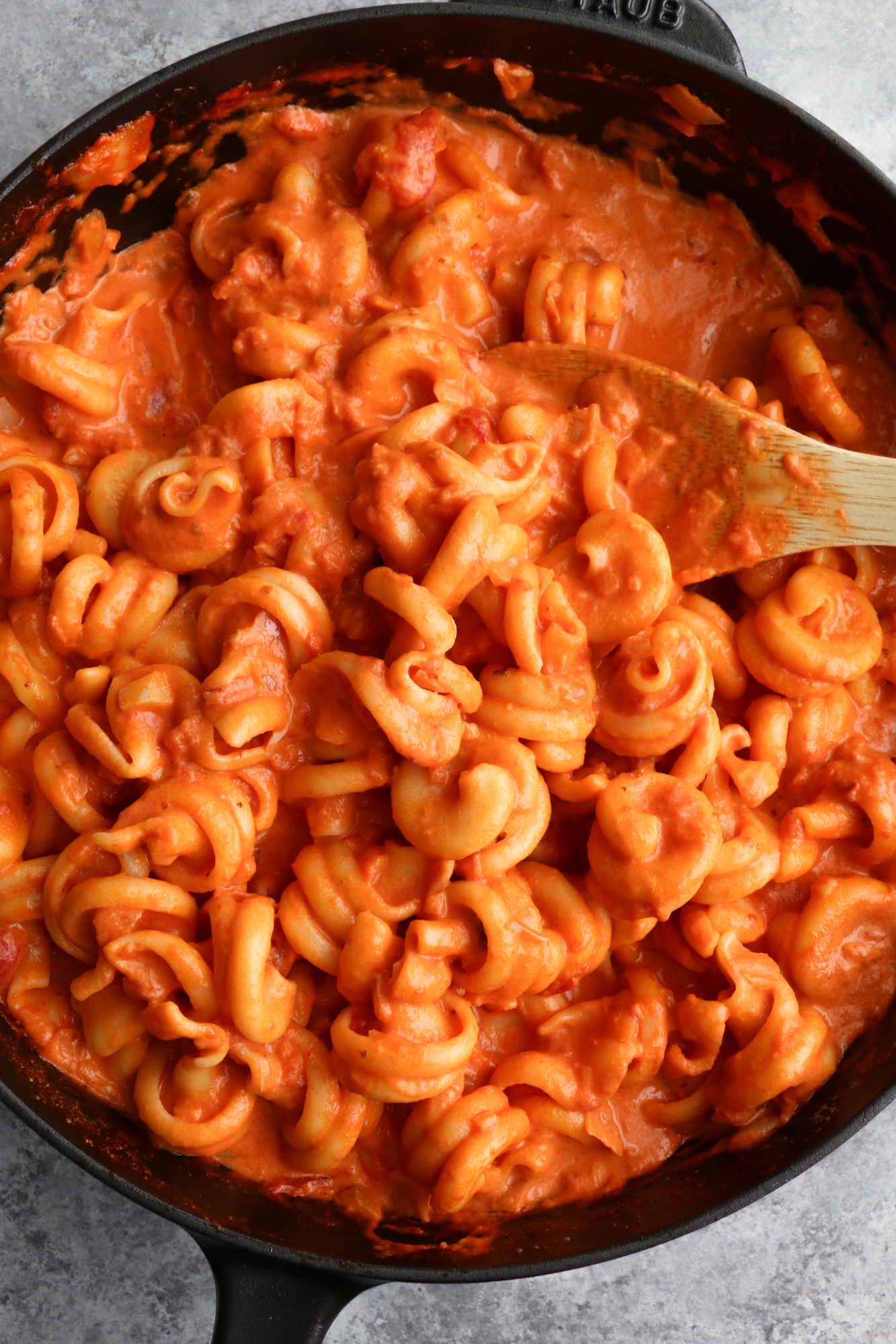 Pasta Alla Vodka! You probably know this dish as Penne alla vodka but this recipe can, in fact, be made with any shape of pasta. It’s absolutely delicious and comes together in no time at all. We hope you try it!