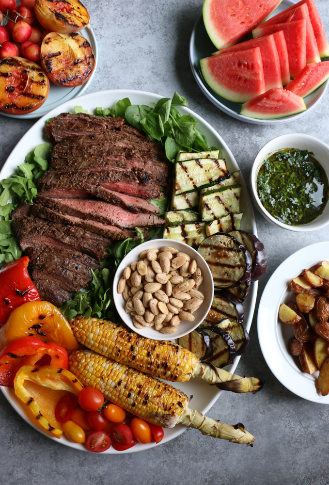 Sometimes, I also just grill some flank steak and some veggies, and serve everything on a big platter, as shown above.