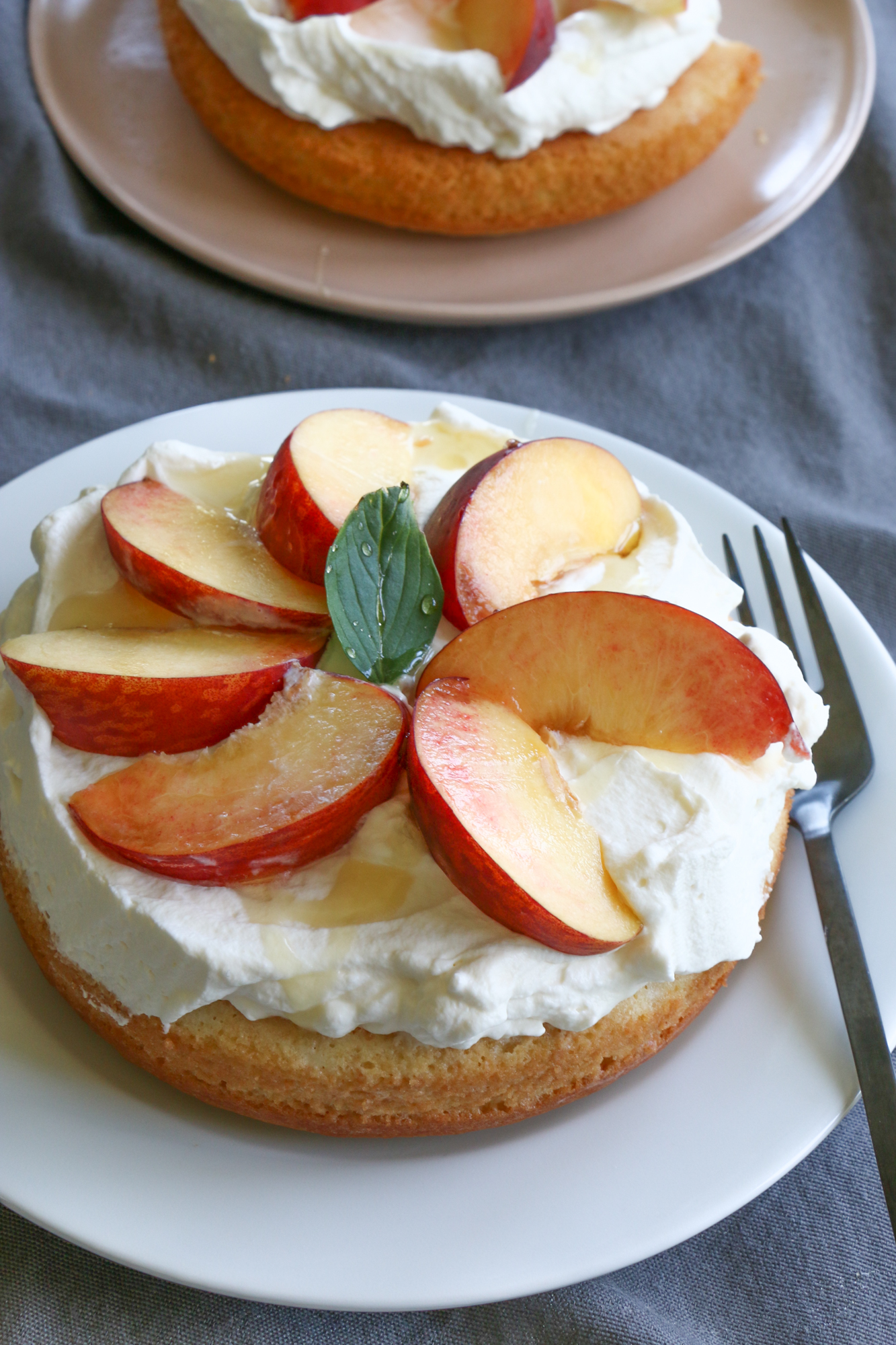 I love topping these cakes with fresh whipped cream and fresh peach slices. You could also add fresh berries on top. I have also added strawberries and balsamic glaze! So good!