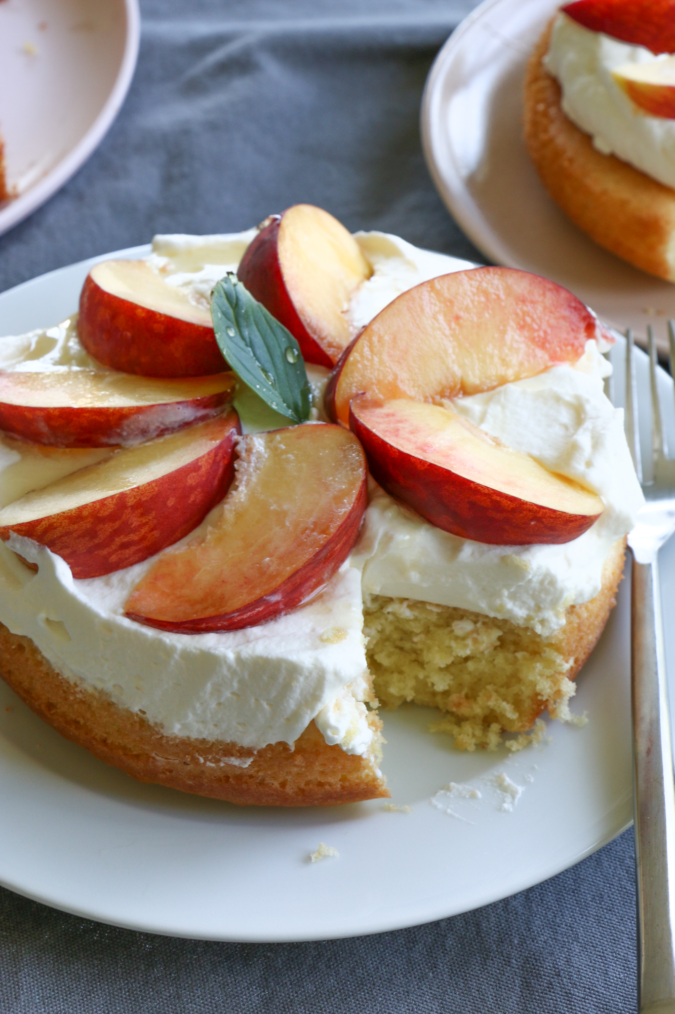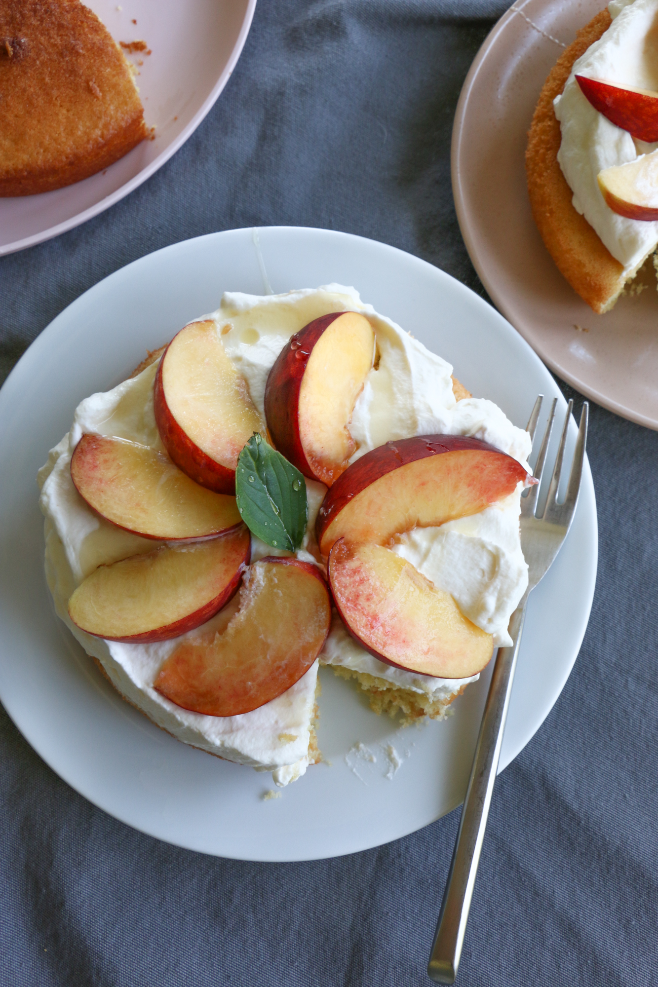 Olive Oil Cake With Fresh Whipped Cream and Peaches
