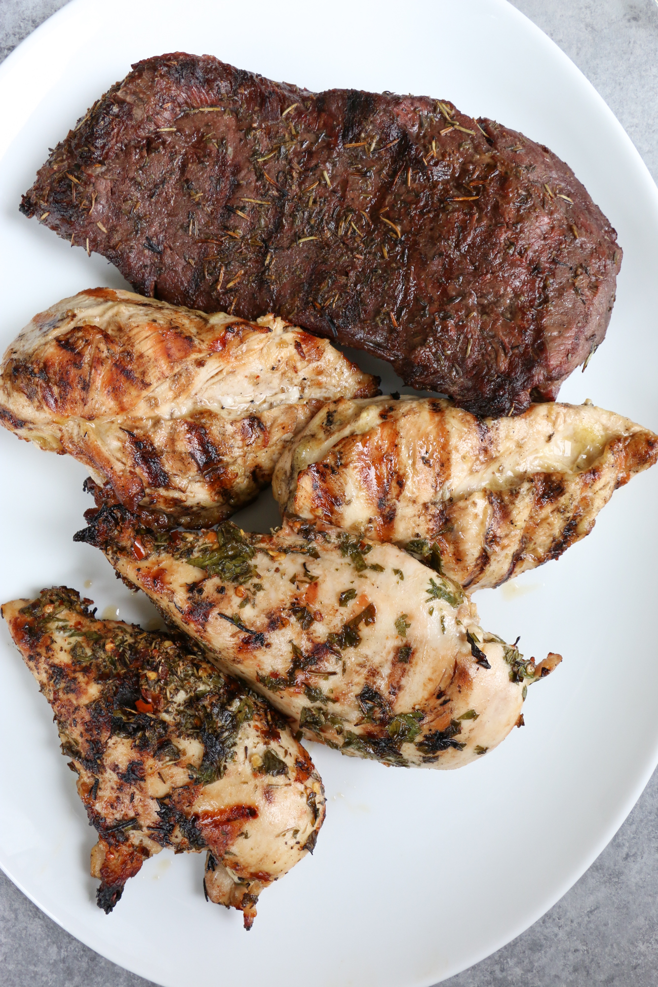 The easiest way, in my opinion, to elevate your meals is to marinate your meat! Marinades help to tenderize and add flavor to meats. A simple marinade doesn’t take long and you can simply place it in a zip top bag and refrigerate for a few hours. This isn’t necessary all the time depending on the recipe you are using and your cut of meat but I love to do this when meal prepping. This allows me to have really flavorful meat that I can add into recipes to use throughout the week. I also feel like grilled marinated meats re-heat really well which is ideal when I prep and cook them earlier for meals later in the week.