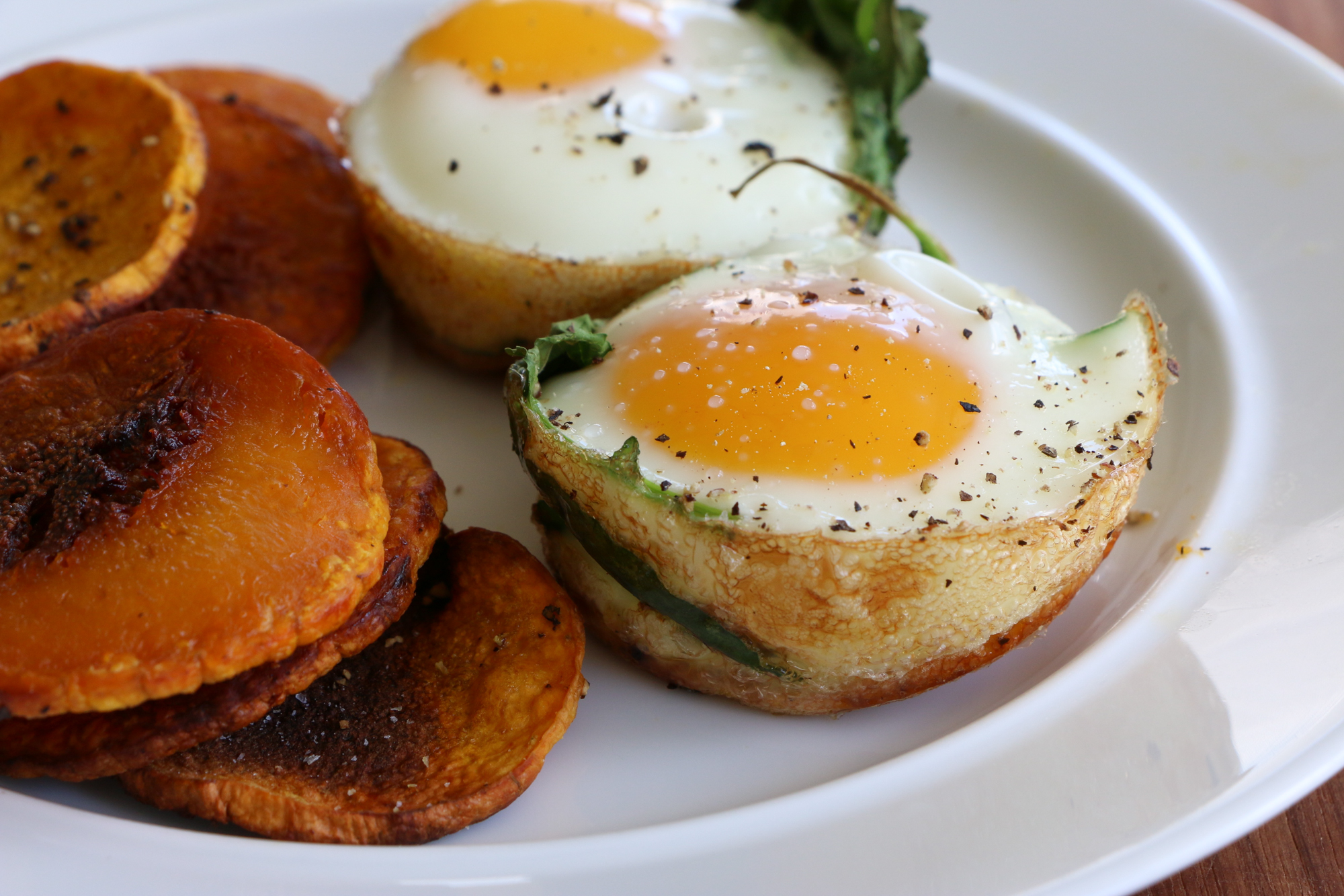 - Remove the muffin tin from the oven. Add some baby kale or spinach on top of the cooked honeynut squash slice and then carefully add an egg on top. If desired, season with a little more salt and pepper. Bake for another 15 to 18 minutes. (Even if you are not adding an egg, keep the honeynut squash slices in the muffin tin to bake for the additional 15 minutes so they get nice and crispy.)