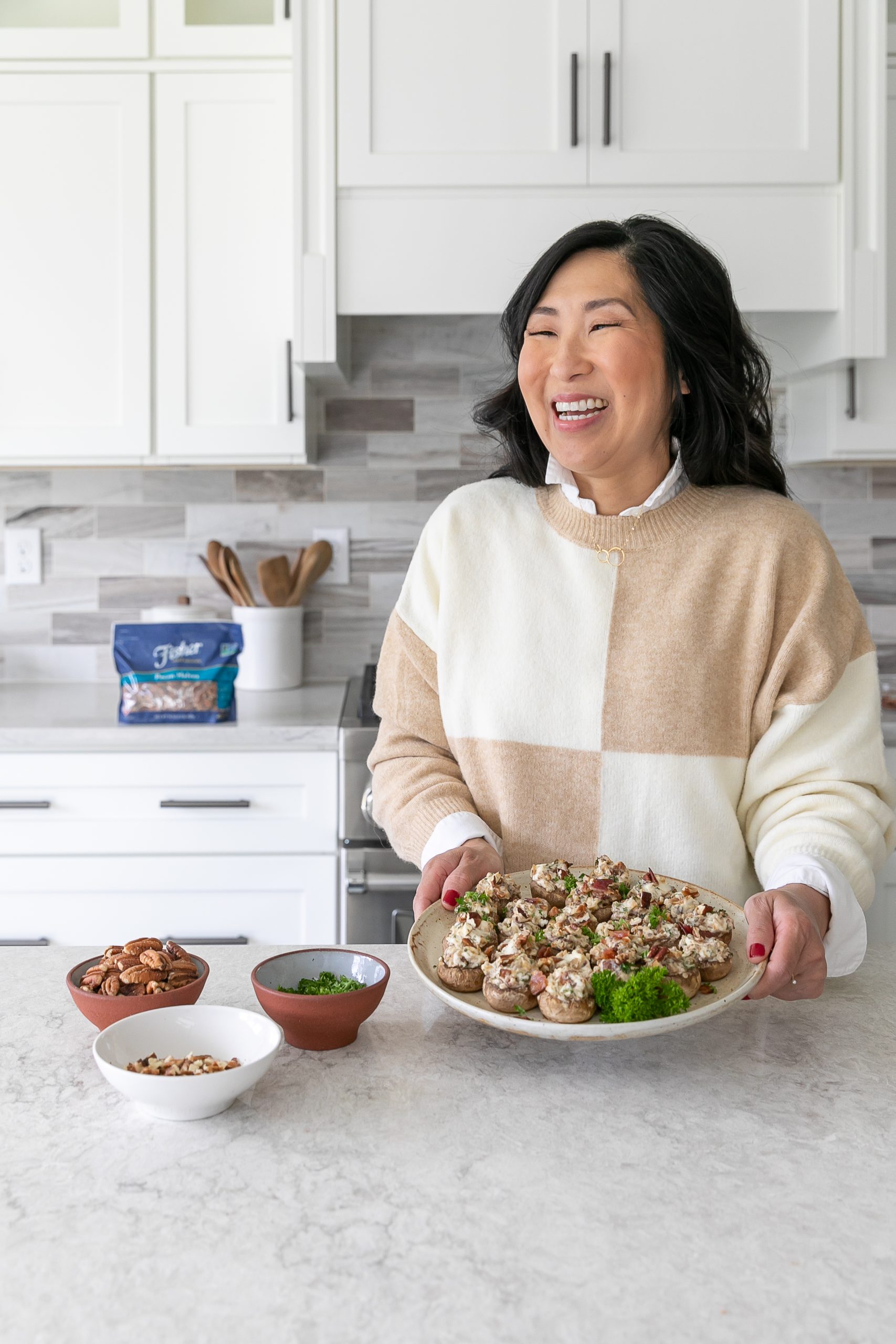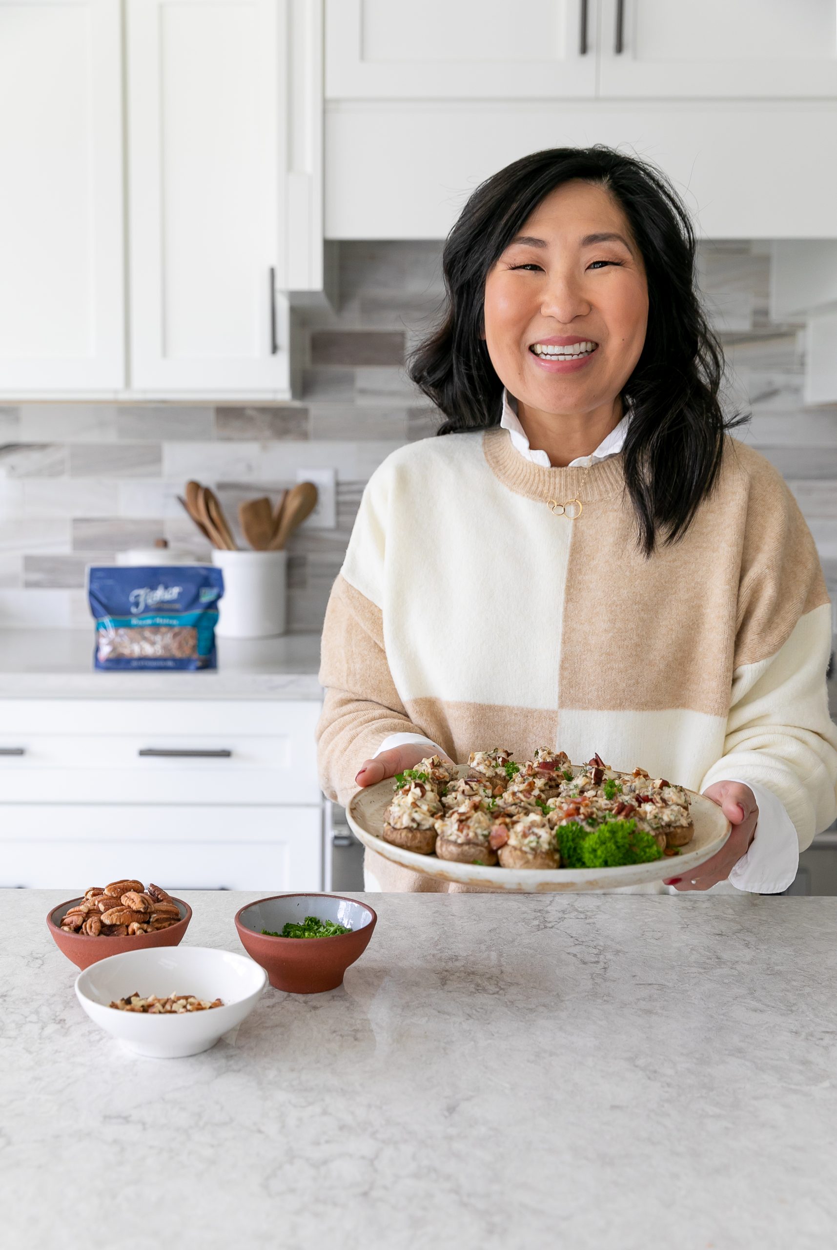 I love cooking with and adding pecans to my dishes for flavor and texture. You’ve got to try these Bacon Pecan Garlic Mushrooms using Fisher Nuts. They are so good! With Fisher Nuts, your meal is in the bag!