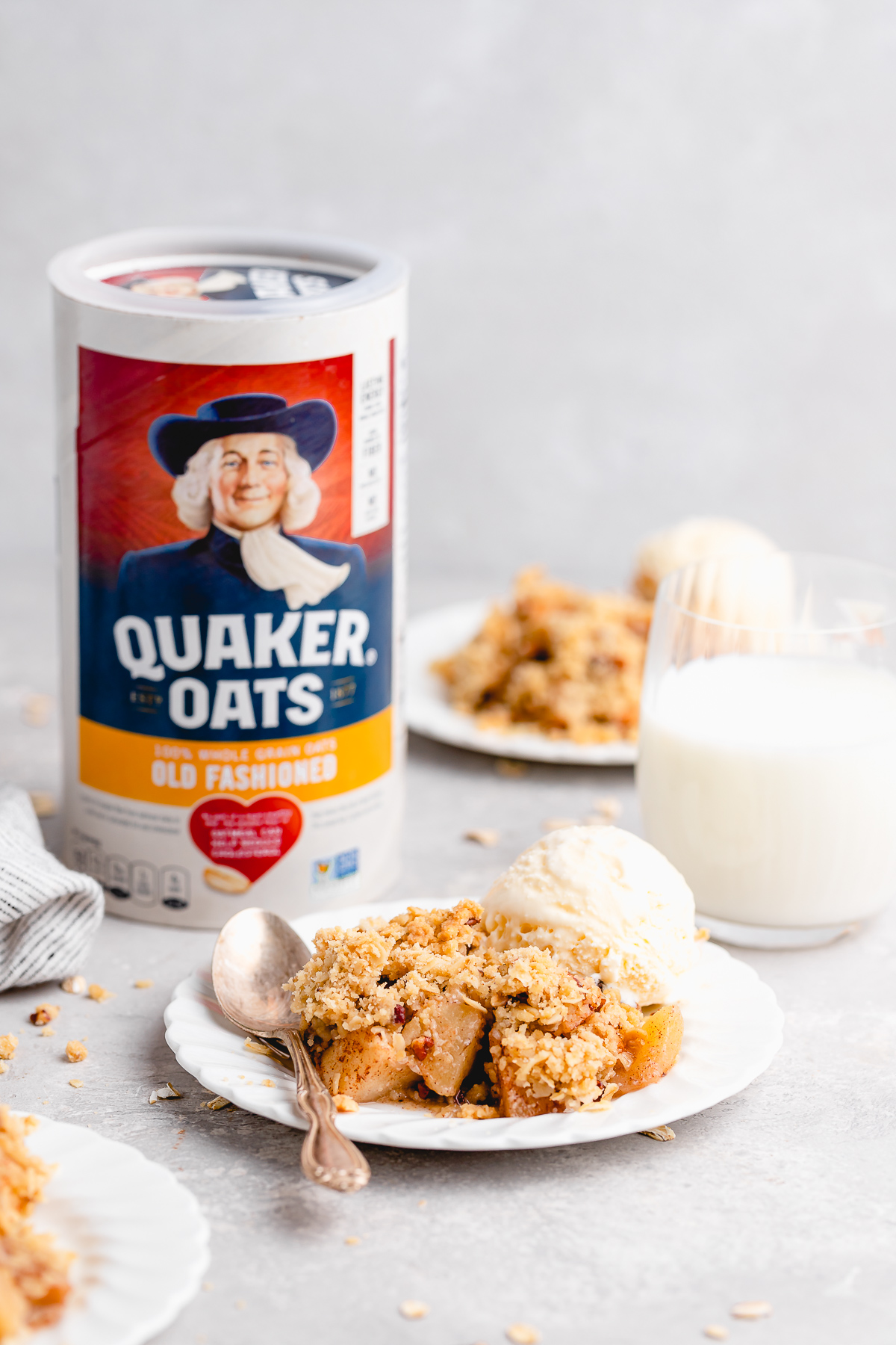 We’ll have a packed house this holiday season and we can’t wait to bake up some treats for everyone! Whether it’s one of my favorite cookies like my Spiced Oatmeal Raisin cookies, or this delicious Skillet Apple Crisp, we are always reaching for our Quaker Old Fashioned Oats which are 100% whole grain.
