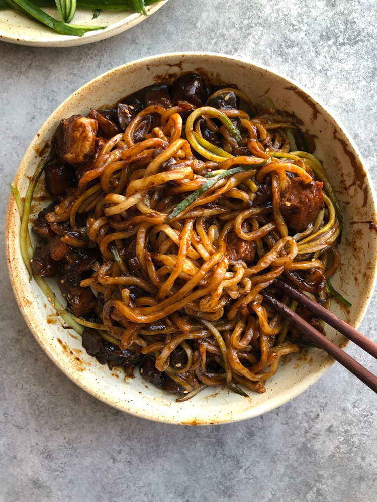 6. Bonus recipe! Jajangmyeon! This is really a Korean/ Chinese dish. I would always have jajangmyeon at a Chinese restaurant in Dallas that was owned and operated by Korean people. This is noodles in a black bean sauce. Savory and oh so delicious, you can make Jajangmyeon with pork, beef or go meatless!