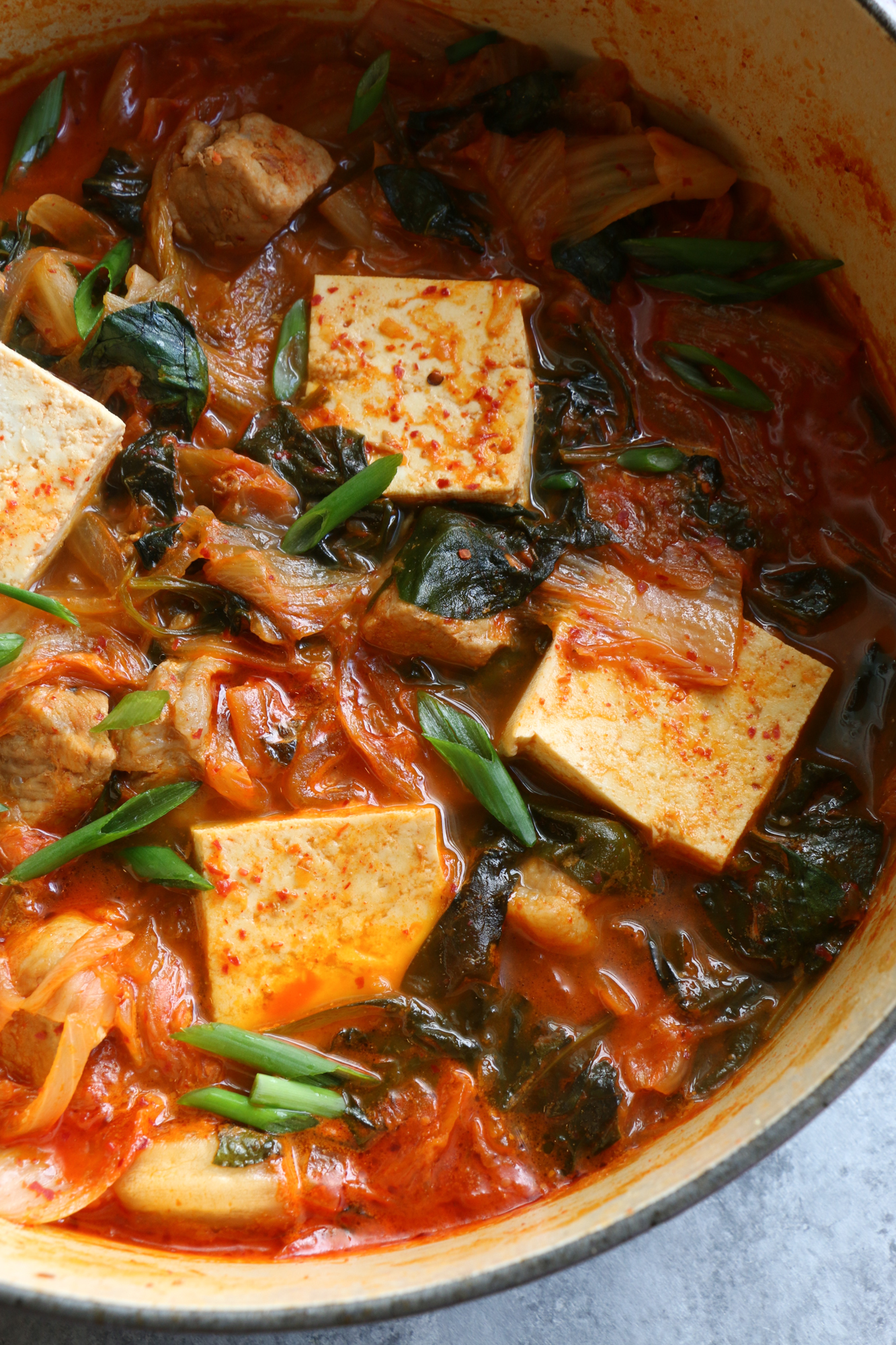 4. Kimchi Jjigae: a spicy, savory classic Korean soup made with tender pork shoulder (or other protein options) and old, fermented kimchi. This is the best when it’s cold outside and when it’s served with a big bowl of rice. Kimchi can typically stay in your fridge for up to 6 months; some will say longer. When your kimchi becomes really old and sour, that’s when it’s perfect for Kimchi Jjigae or Kimchi Fried Rice. I think Kimchi Jjigae is like chicken soup for Koreans.
