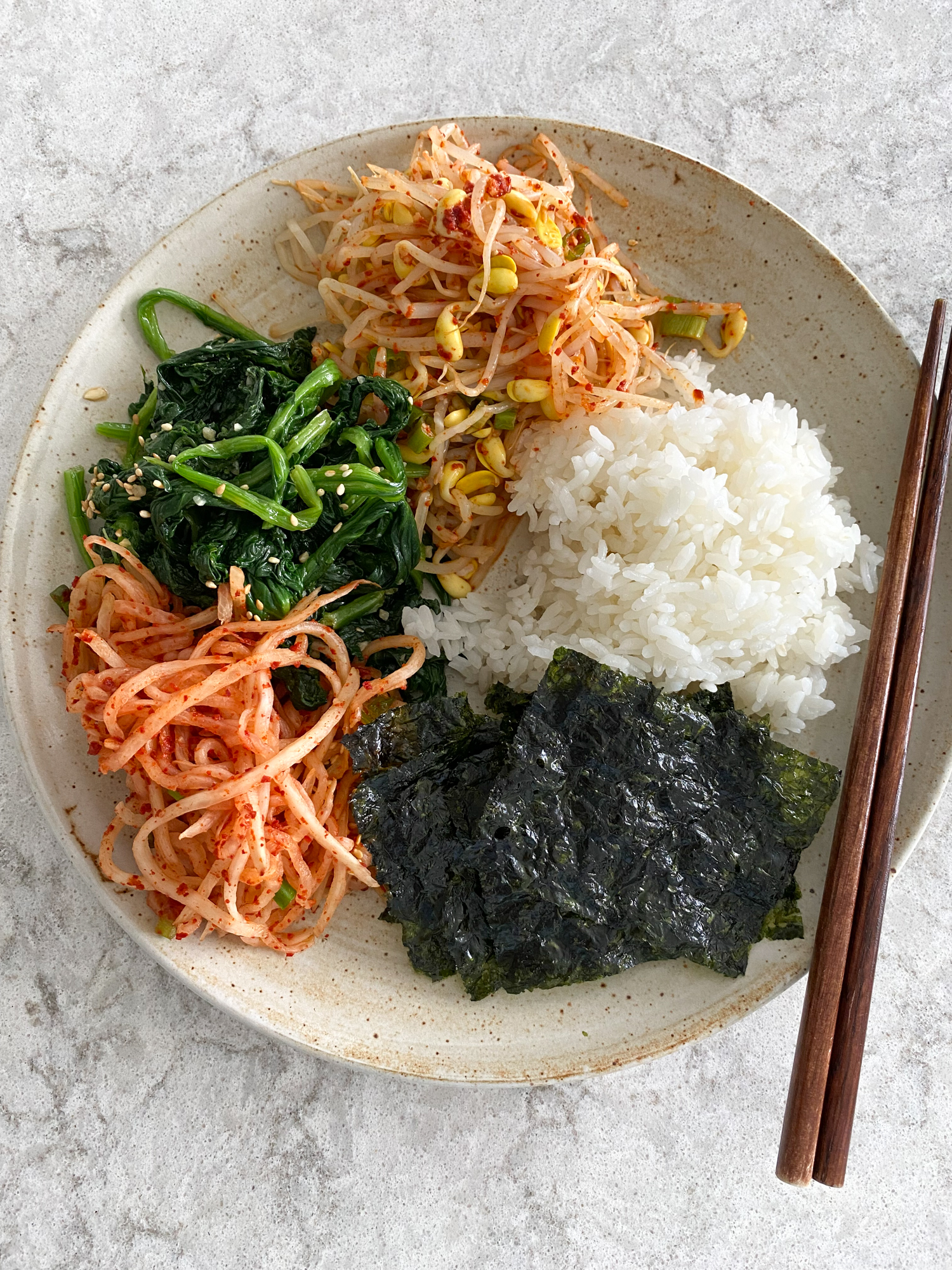 I said it above and I’ll say it again. What I love about this specific banchan dish is that it hits all notes on your palette: sweet, a little salty, spicy and sour. It’s like a party in your mouth. I also love that you don’t have to cook the radish at all. You simply salt it, let it sit for 5 minutes and then you use your hands to squeeze out the excess water from the radish strands. It’s so easy to make! We hope you try this!