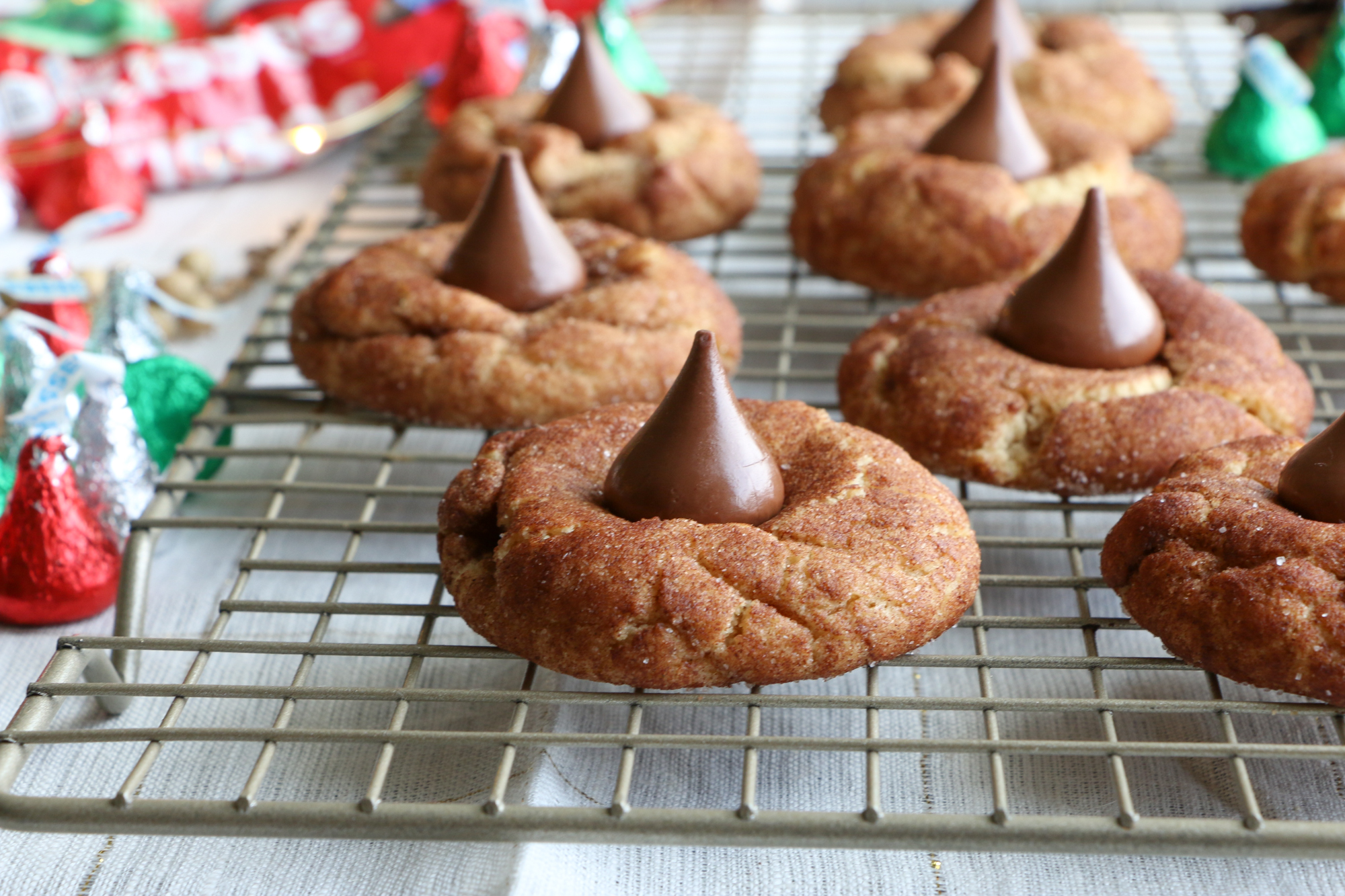 Cinnamon Peanut Butter Blossoms using HERSHEY’S KISSES Milk Chocolate flavored candies in red, green, & silver foils! The classic Peanut Butter Blossoms you love, dressed up for the holidays! No holiday at my house is complete without these. We hope you try the recipe!