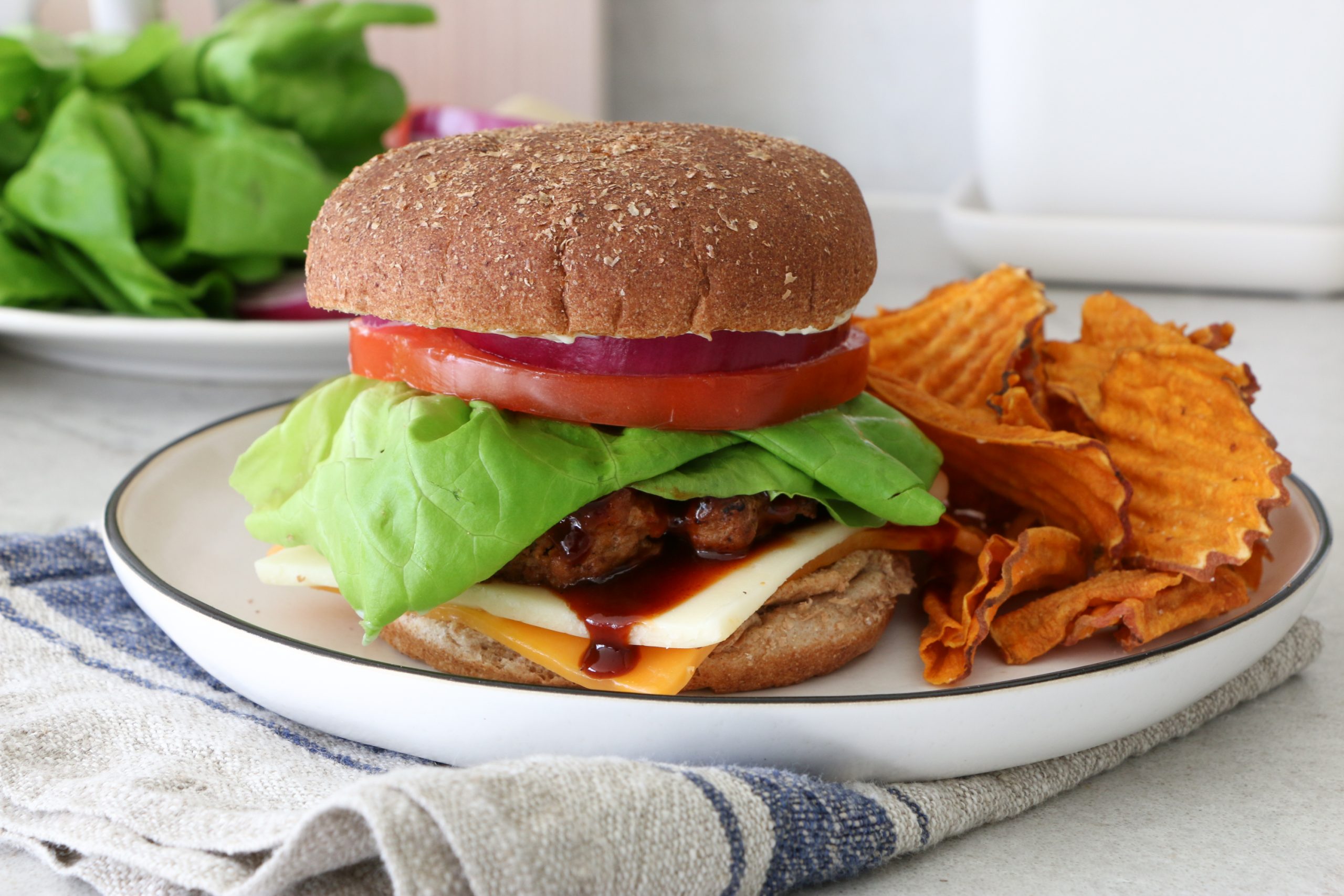 - To assemble: place some cheese on top your toasted whole wheat bottom bun, add a turkey patty, some gochujang glaze, top with lettuce, tomatoes and red onion. Spread some mayonnaise on the other bun and add the top bun on top. Enjoy!