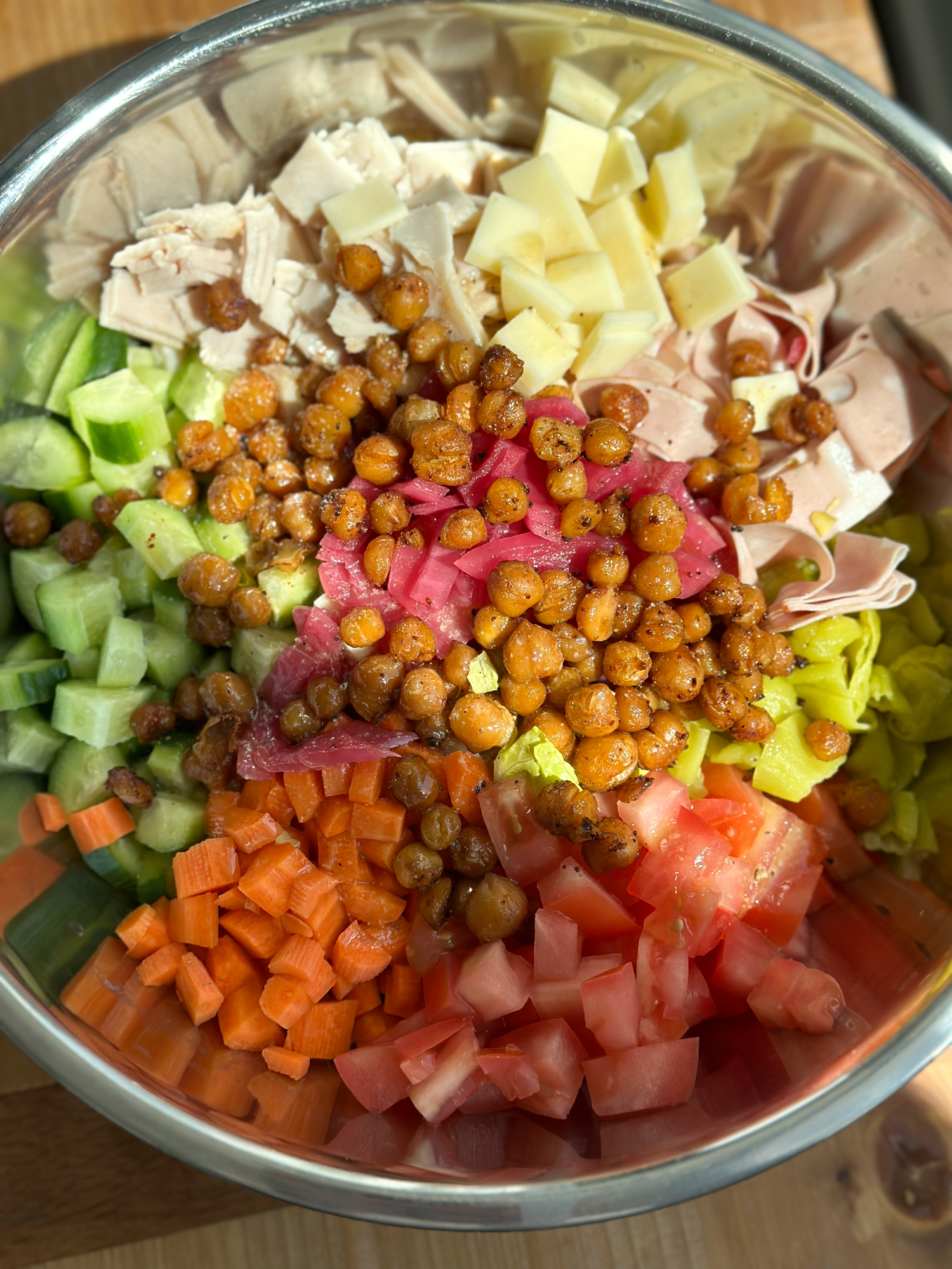 Sometimes all you need is a big salad to fill you up. I love salads that have a lot of flavor, different textures and are full of protein! After making this hoagie, I had a lot of deli meats leftover and provolone cheese so this salad had to happen.