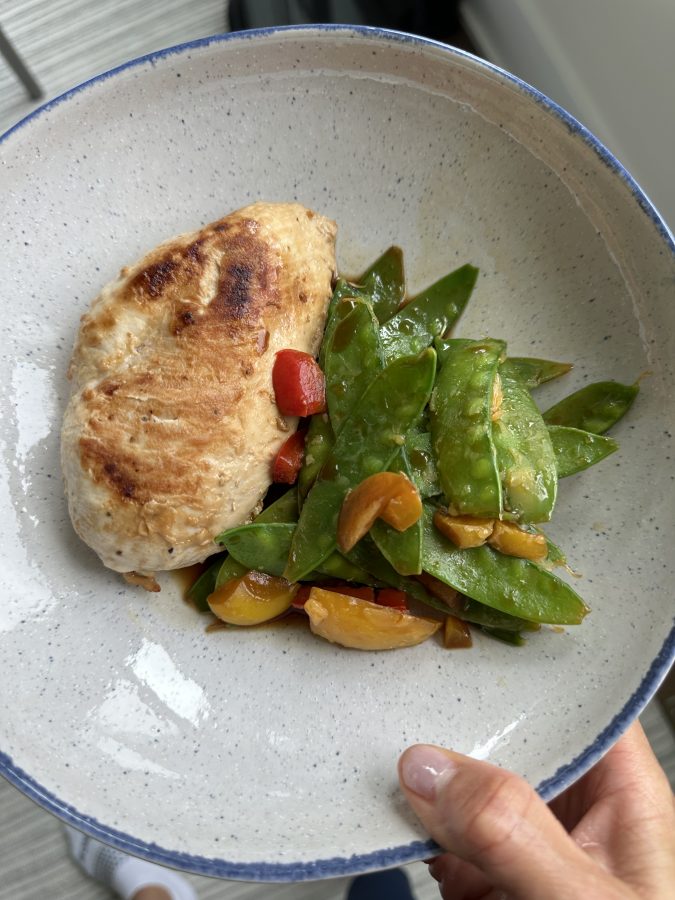Meal 2: Chicken breast and leftover sautéed vegetables
