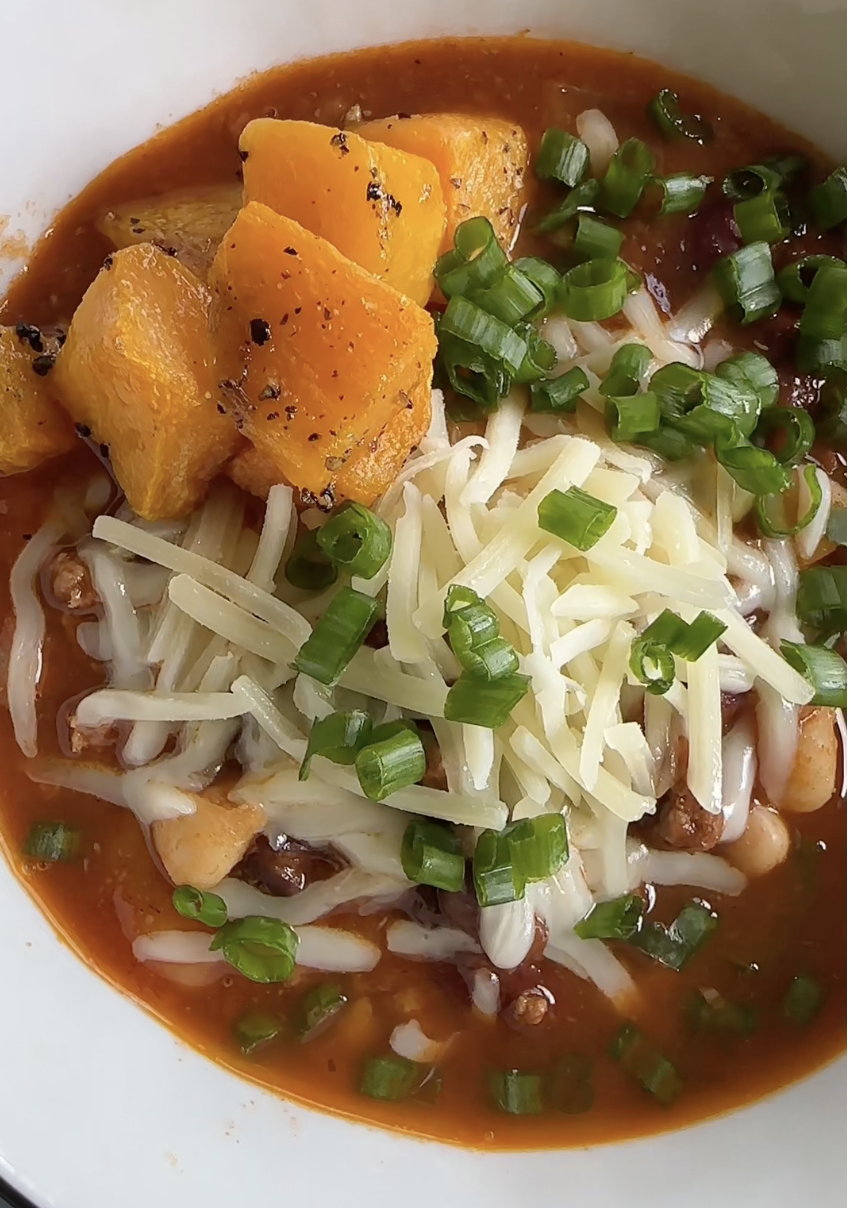 The Best Beef Chili Recipe! I love adding lots of beans and this time of the year, I love adding roasted butternut squash on top as a garnish. Adds texture and so much delicious flavor. I hope you try it!