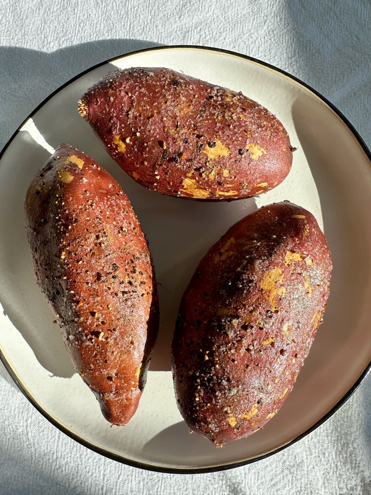 - 3 Korean or Japanese sweet potatoes scrubbed clean, dried and prick with fork all over