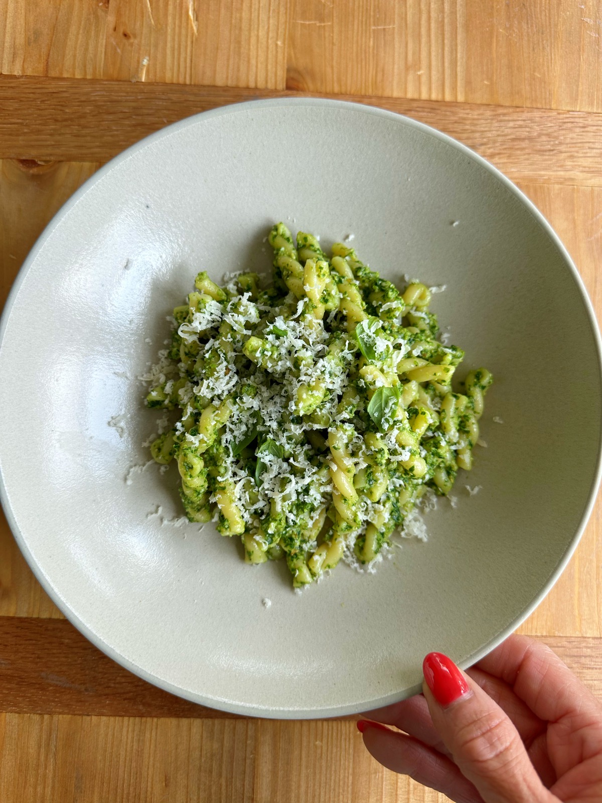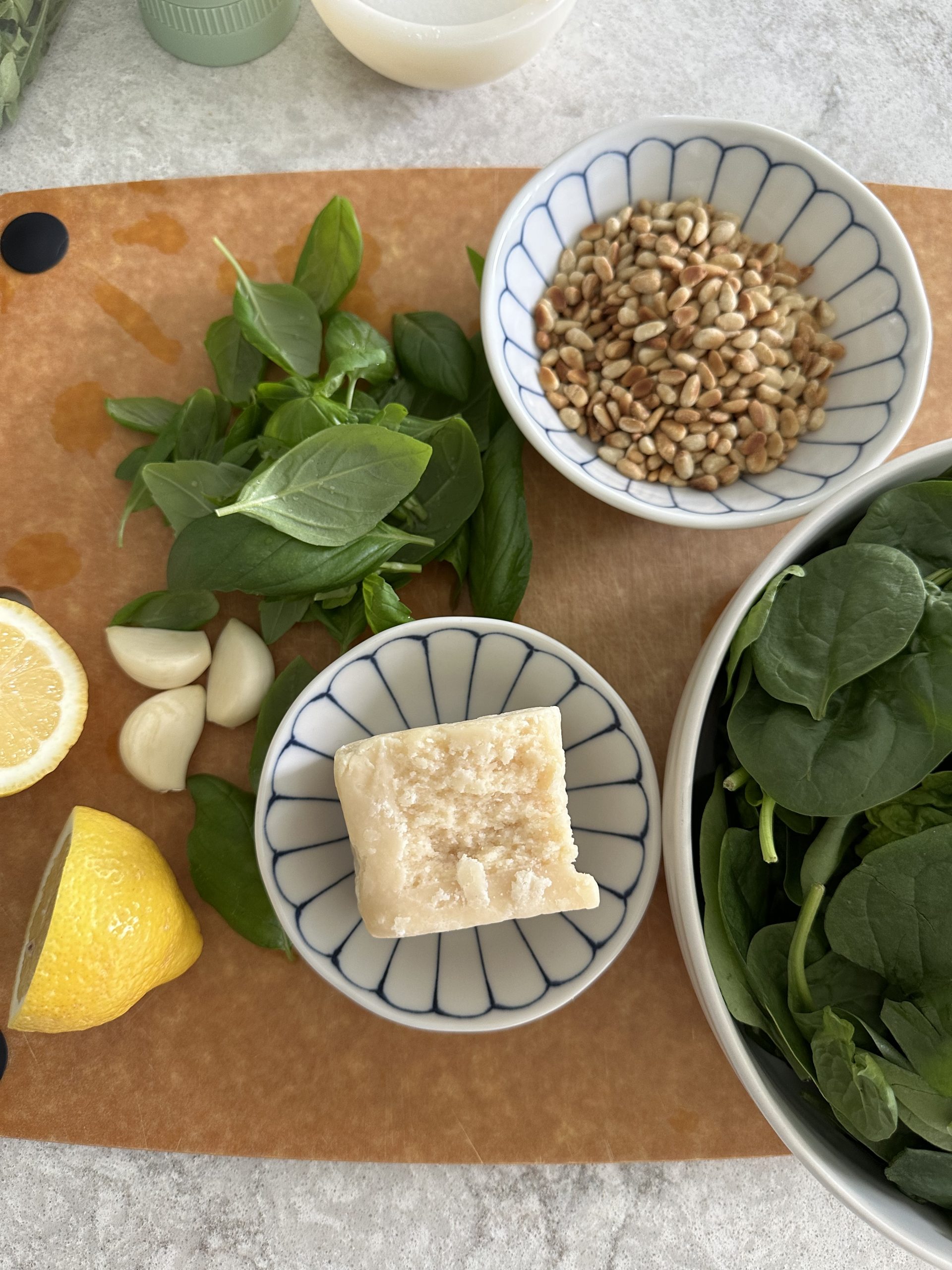 I love that pesto is super versatile and you can easily swap out different ingredients. Like pine nuts for example, my daughter actually prefers pesto with walnuts or pecans instead of pine nuts. You can also use pecorino instead of parmesan cheese.