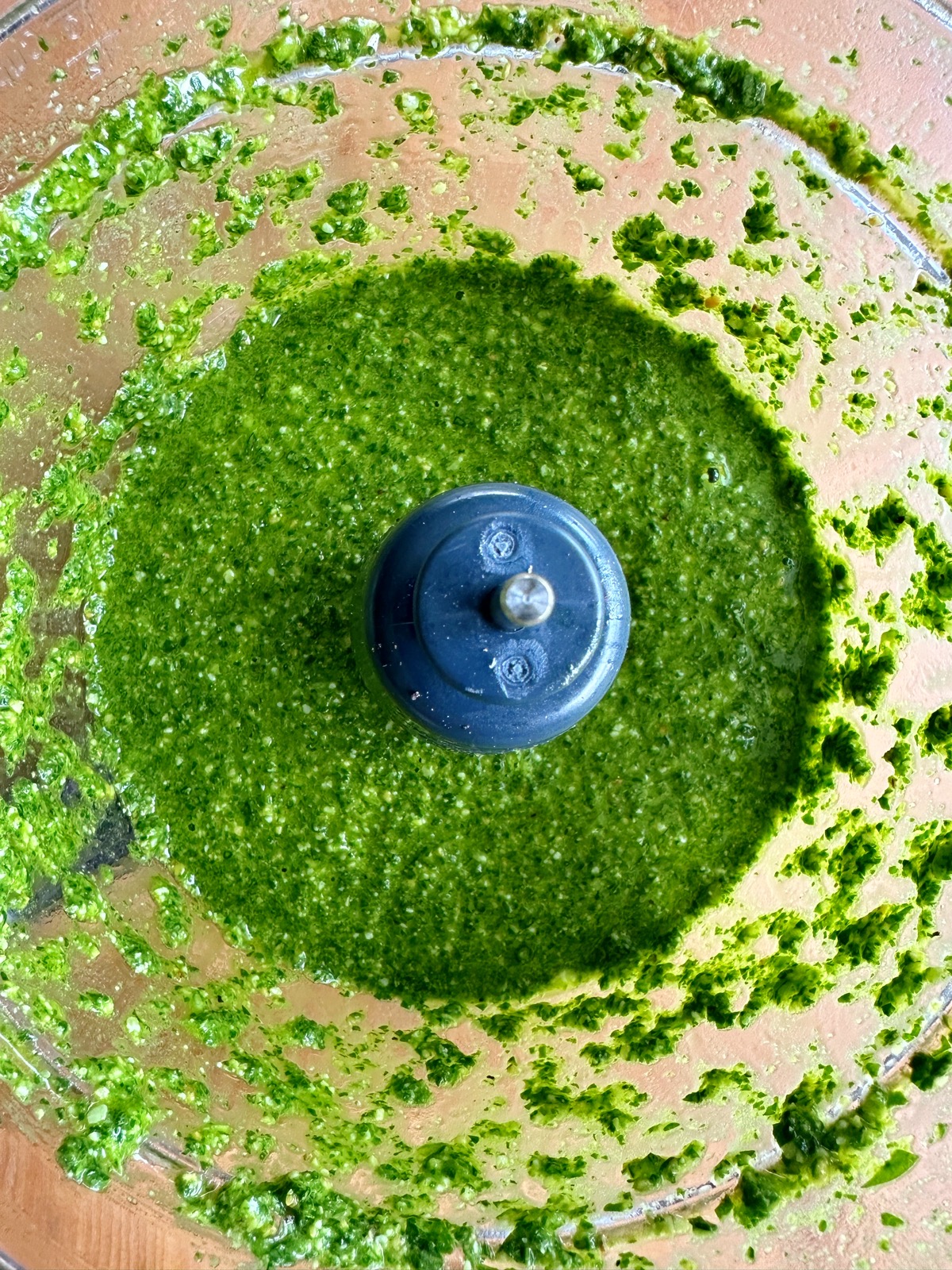 - With the food processor running, slowly drizzle in the olive oil until the desired consistency is reached. I like adding a 1/2 cup of olive oil but start with a 1/4 cup and add more if you need to. Taste and adjust anything as needed.