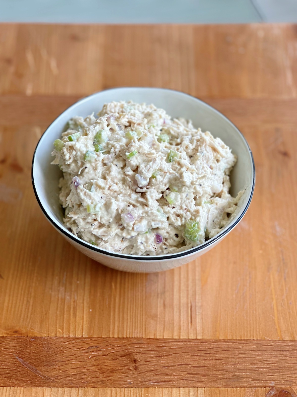 Deli Chicken salad recipe! Creamy, flavorful and delicious! Eat this in a sandwich, with crackers, tortilla chips or by the spoonful. So good! Just like if you were ordering from a deli, made at home!