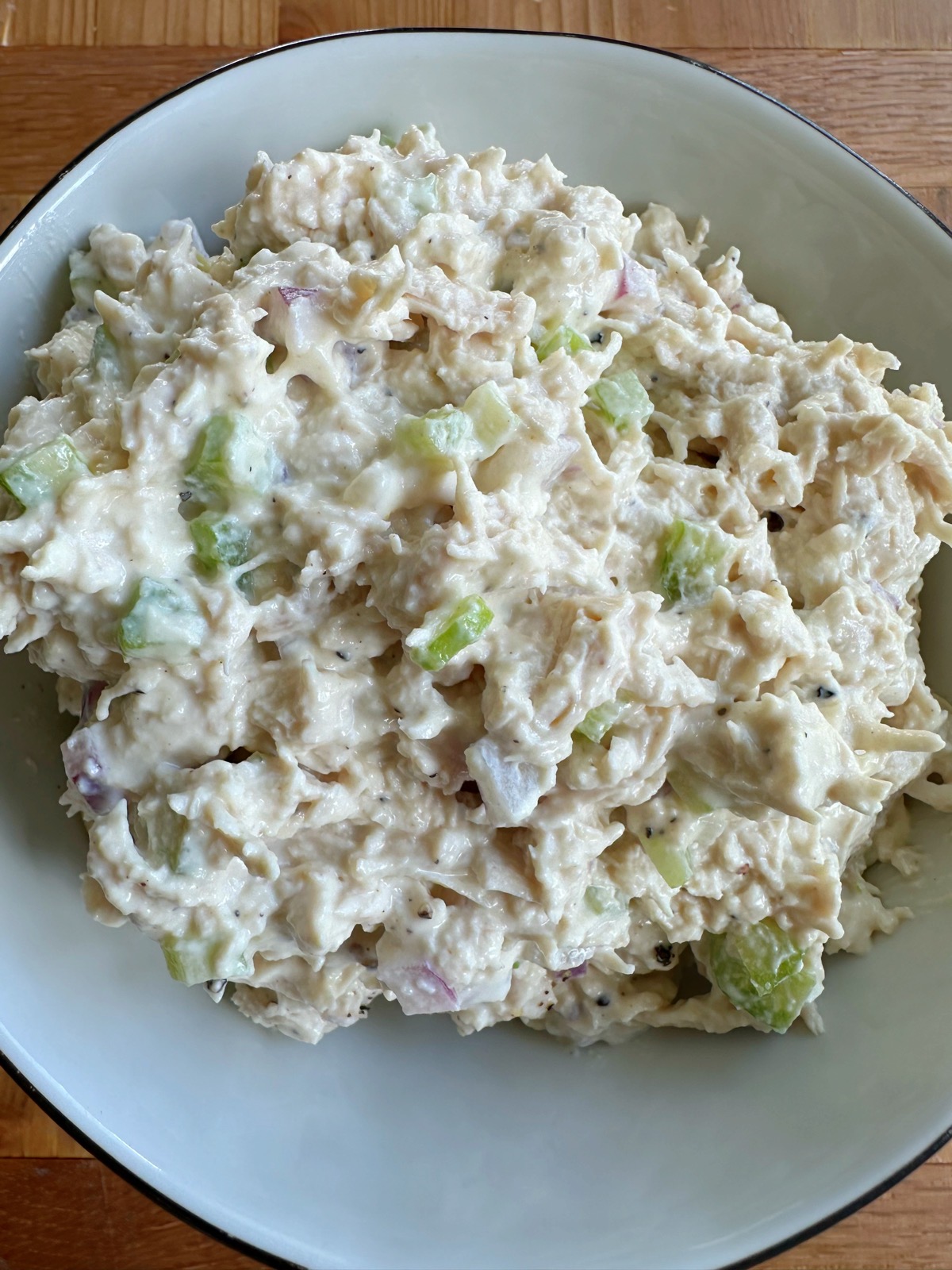 Often times, I will cube or shred up by chicken and you absolutely need shredded chicken for Deli style chicken salad in my opinion! I’ve seen many people do this but I’ve actually never used a stand mixer to shred my chicken. . until yesterday. What a breeze! If you have one, I highly recommend using it! The mixer can literally shred up your chicken in about 30 seconds.