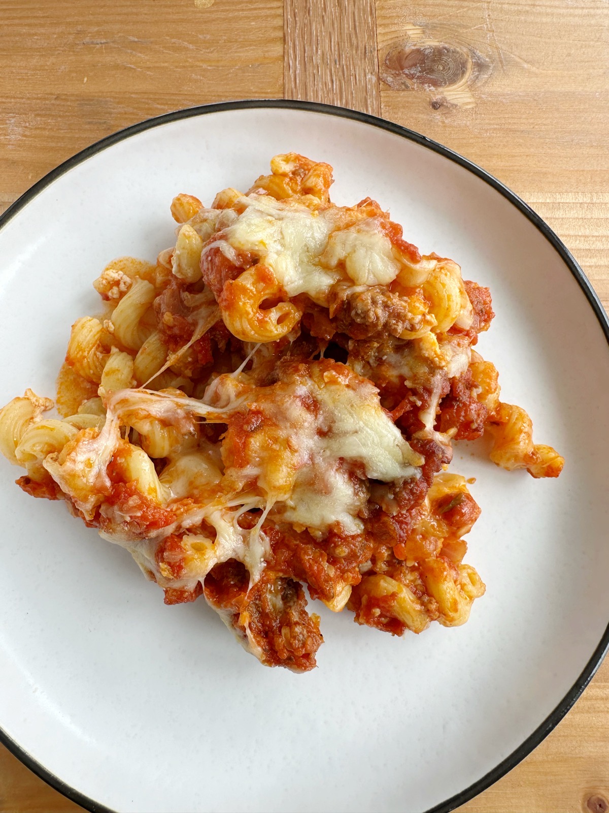 This recipe calls for 2 jars of your favorite marinara sauce. I used Rao’s and a new sauce that was sent to me: Sauz. I used their Hot Honey Marinara and I absolutely loved it! High recommend! Also, I thought we had ziti pasta but all we had was Cellentani, which is like cavatappi pasta. . like I said above, this really works with any short pasta. Enjoy!!