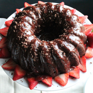 Chocolate Bundt Cake with Balsamic Strawberry Sauce for #Bundtamonth