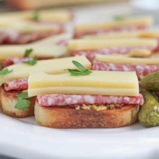Salami and Emmentaler Cheese Crostini with Maille Dijon Mustard + a Giveaway!!